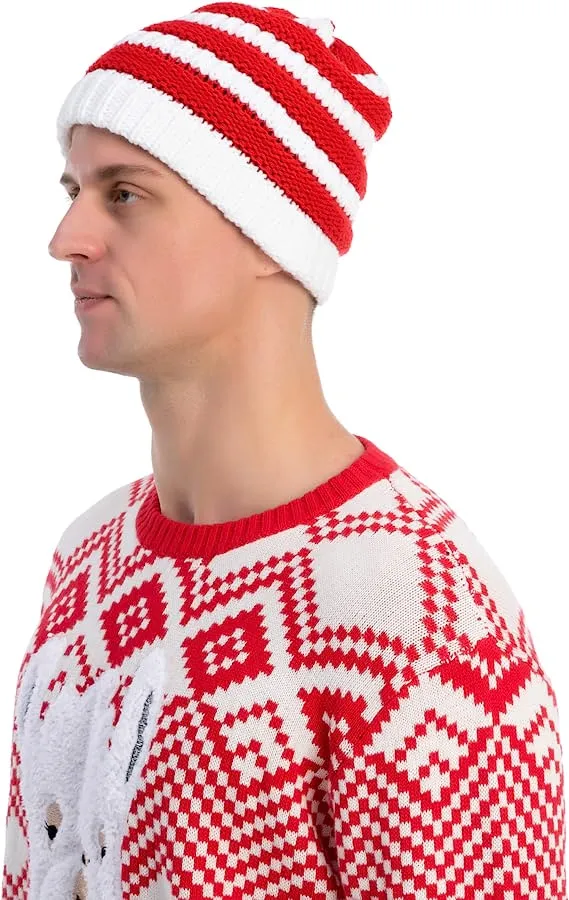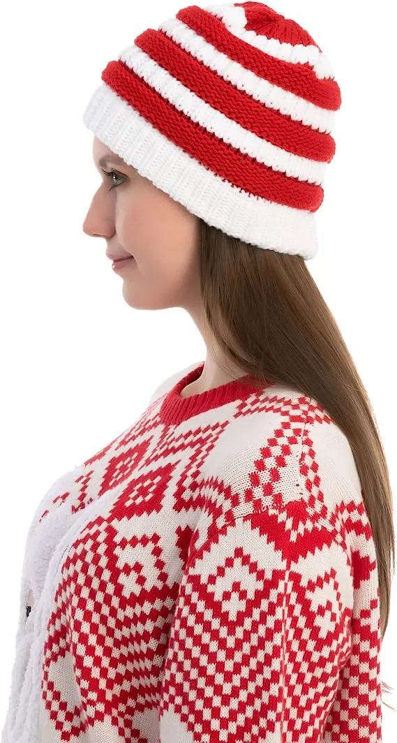 • This Christmas Santa Claus Beanie Hat Soft Slouchy Knit Warm Winter Unisex Beanie Santa Hat features red and white wonderful colors for Men and Women. The Winter Beanie Santa Hat is one size fits most hat with 23 inches measurement around. This is stretchable knitted cable caps can be hand washed with cool water, mild soap, and line dry.